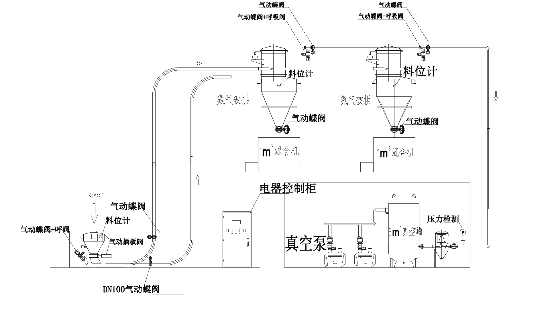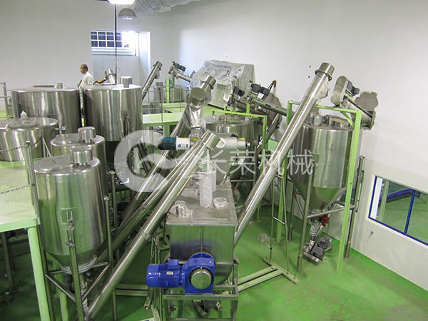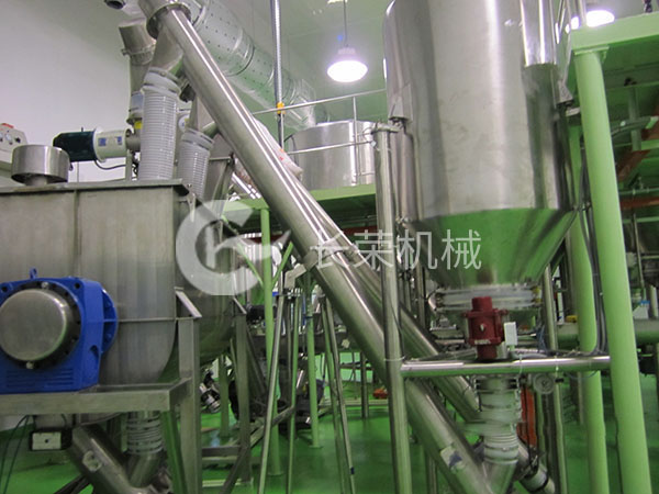 1.运送物料:奶精、白糖、咖啡混淆物,,,,,,质量比为8:8:2,,,,,,混淆后比重为0.6~0.6。。。。。。。。 2.水平运送距离约5M,,,,,,笔直高度约6M。。。。。。。。 3.两条运送线可相互切换,,,,,,运送至两个差别的混淆机。。。。。。。。 4.与物料接触部分均为食物级SUS304。。。。。。。。 5.管路均为食物级,,,,,,内壁抛光处置惩罚 6.系统所需压缩空气0.5Mpa.(注:脉冲所需压缩空气切合食物要求) 7.装备管道接地。。。。。。。。 系统运送能力:6吨/小时。。。。。。。。 定制说明:可以凭证客户要求定制装备。。。。。。。。